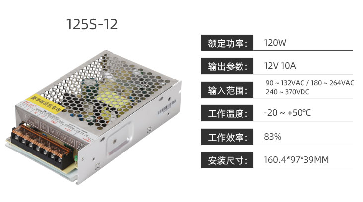 RS系列:支持工业铝壳设计,提供单组输出,适用于LED显示屏、自动化设备及门禁系统,部分型号支持超薄设计。