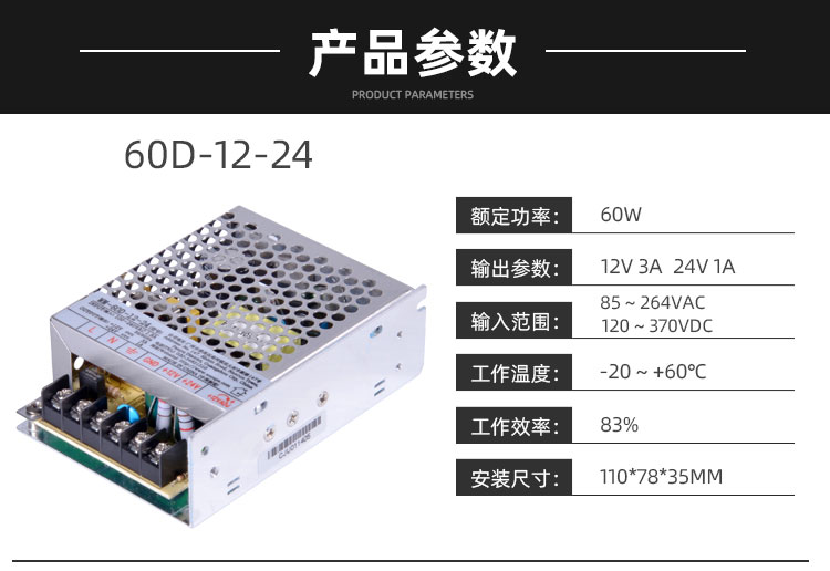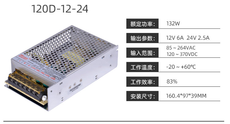 输入范围:85 ~ 264VAC / 120 ~ 370VAC