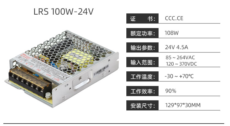 24V开关电源产品特点:自主研发,品质保障。电池保护,漏电保护,过充保护,短路保护,虚电保护,过温保护。24v开关电源在很多的行业被使用,例如家用电路电气,家电设备,汽车行业,照明行业等等。主要是因为24v开关电源具有非常好的特性,例如可以控制pmv电路,起到非常好的稳定性;可以经过次级变压到高压电源,给电路进行供电。还可以把交流电整理成直流电,从而起到电流转化作用。可见24v开关电源的作用是如此之大。