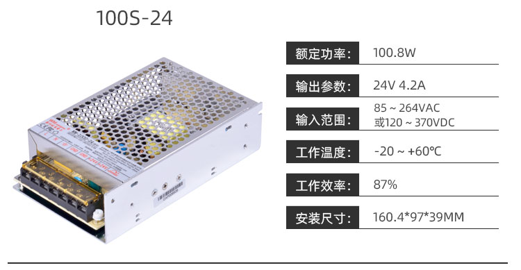 宽输入电压范围:支持80 ~264VAC或120~370VDC两种输入电压范围,通过开关选择,适应不同地区的电网标准。