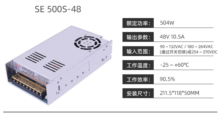 大功率定制款:提供500W高功率输出,支持48V/10.5A工业电源定制服务,可满足高负载需求。