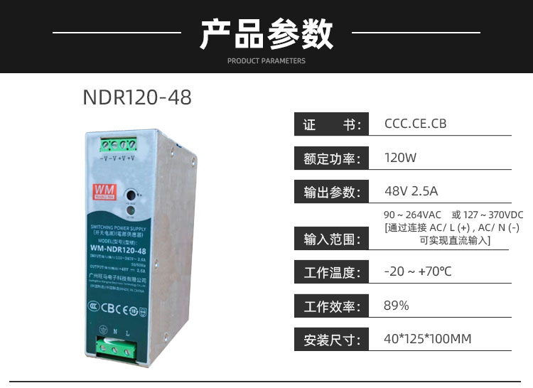 输入范围:90 ~ 264VAC或127 ~ 370VDC(通过连接AC /L(+),AC/N(-)可实现直流输入
