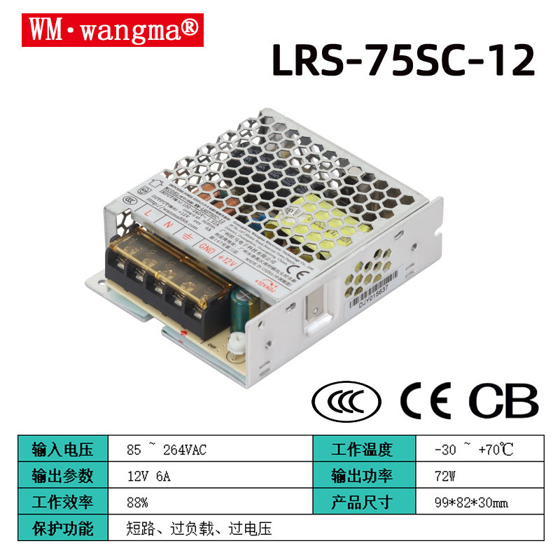 标准型号:WM-LRS75SC-5/12/24/36/48开关电源