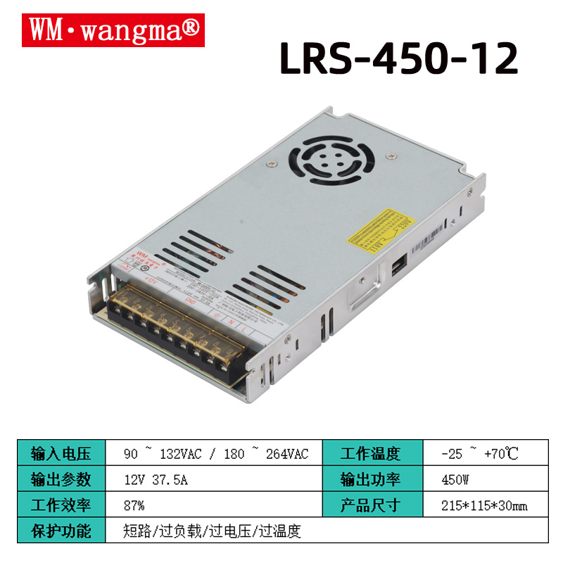 | LRS-450-12 | 12V DC | 37.5A | 450W | 200mVp-p |
